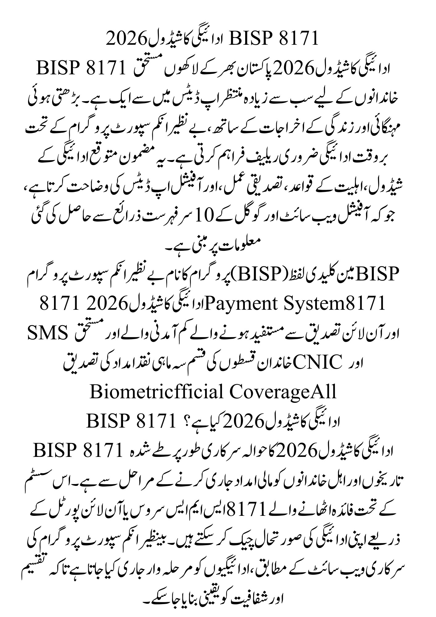 The BISP 8171 wallet account system is a digital payment solution introduced to replace manual cash distribution. Under this system, eligible families receive their quarterly installments directly into a secure wallet linked with their CNIC. According to the official website and verified Google sources, this system reduces fraud, delays, and deduction complaints.