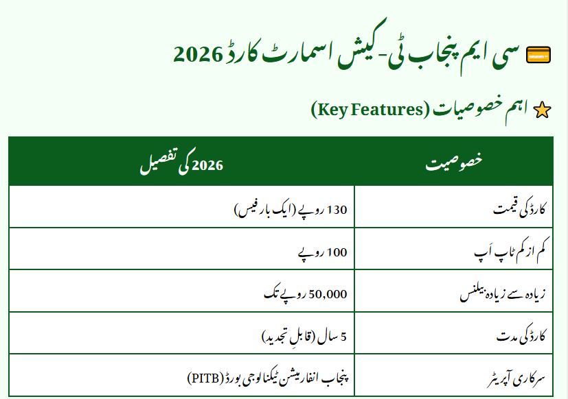 Chief Minister Maryam Nawaz Sharif has introduced the T-Cash Card as a key part of the Digital Punjab 2026 vision. This contactless card aims to replace paper tickets, reduce queues, and provide a secure, unified payment system for millions of citizens.