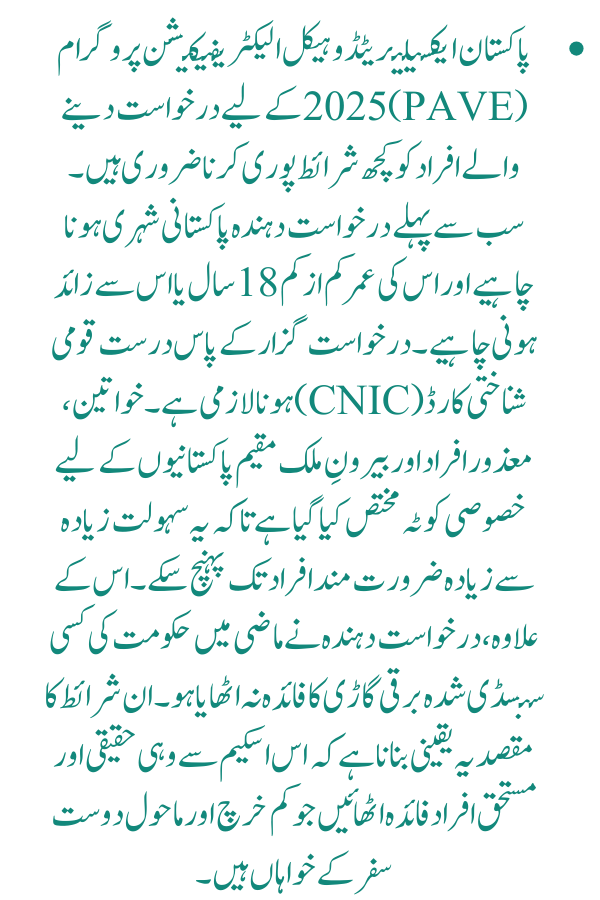 The PAVE Scheme 2025 is a golden opportunity for Pakistanis to adopt modern, eco-friendly, and affordable electric transportation. With subsidies covering up to 80% of costs, and special quotas for vulnerable groups, this program will not only support families but also reduce environmental pollution and fuel dependency.