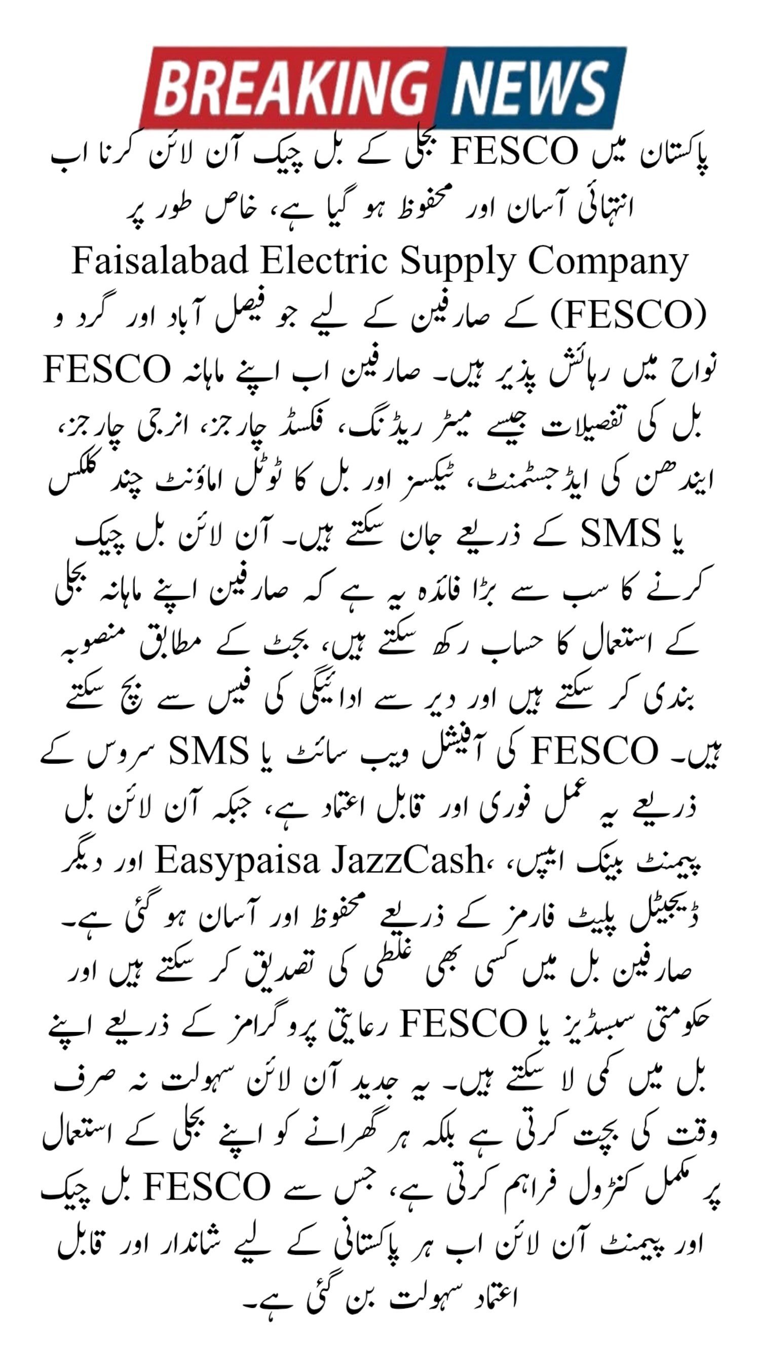 Paying your FESCO electricity bill online is safe and convenient with several options.
