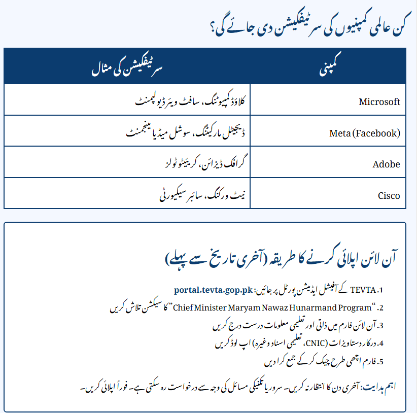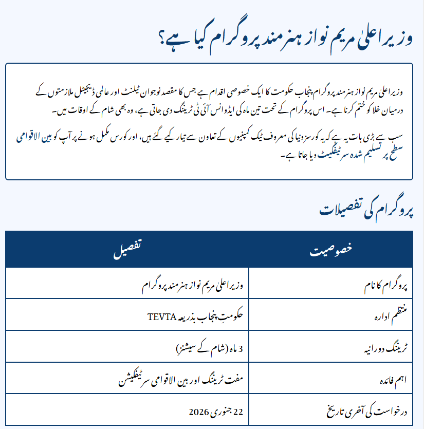 Stop everything and check this now! The Government of Punjab has just launched a golden opportunity for its youth to get absolutely free, world-class IT training with certifications from giants like Microsoft and Meta. If you want a high-paying global career but are held back by costly courses, this is your chance to change your destiny in just 3 months. The Chief Minister Maryam Nawaz Hunarmand Program, executed by TEVTA, is a fast-track initiative designed to make you job-ready for the international market. Read on to discover how you can secure your seat before the application window slams shut.