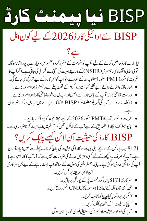 Who is Eligible for the BISP New Payment Card 2026?