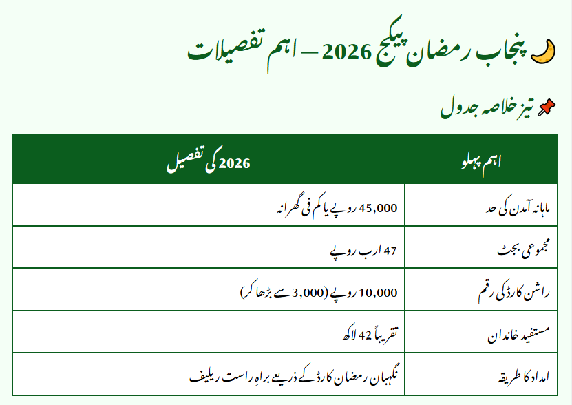 Key Details of the Punjab Ramzan Package 2026